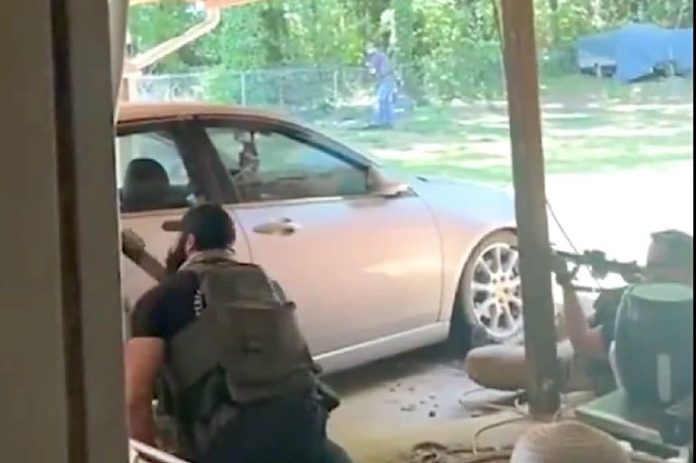 New video from a neighbor’s house shows the chaos of one side of the shootout. It shows one U.S. Marshal shot twice and at least two others firing from behind cover.