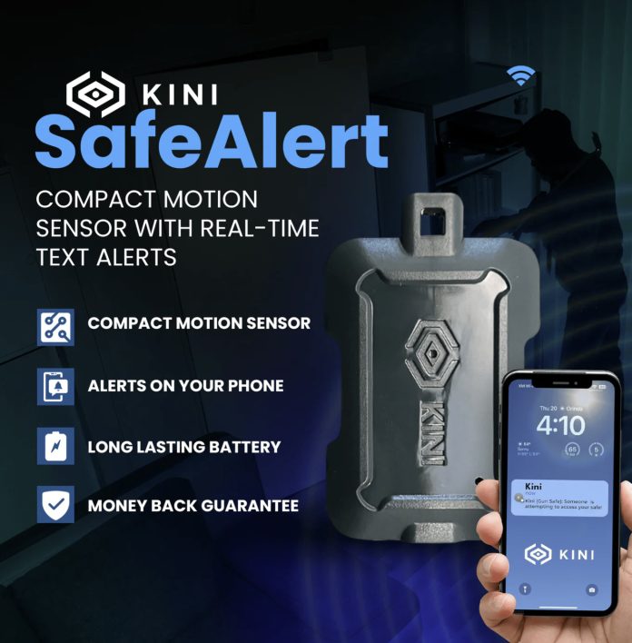 Your Kini can be set up to send emails and texts to multiple accounts and numbers simultaneously, and the message can be customized (e.g. “Movement detected on vault,” or “Movement detected on back door” etc…)