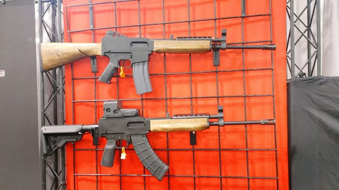 Hydra Weaponry is owned by Mack Gwinn’s son, and a few years back, they released the arm pistol alongside their modular AR design. This year, they brought the Bushmaster rifle to the show. They’ve created both a wood-stocked, iron-sight-equipped replica of the original in 5.56 and a more tactical model.