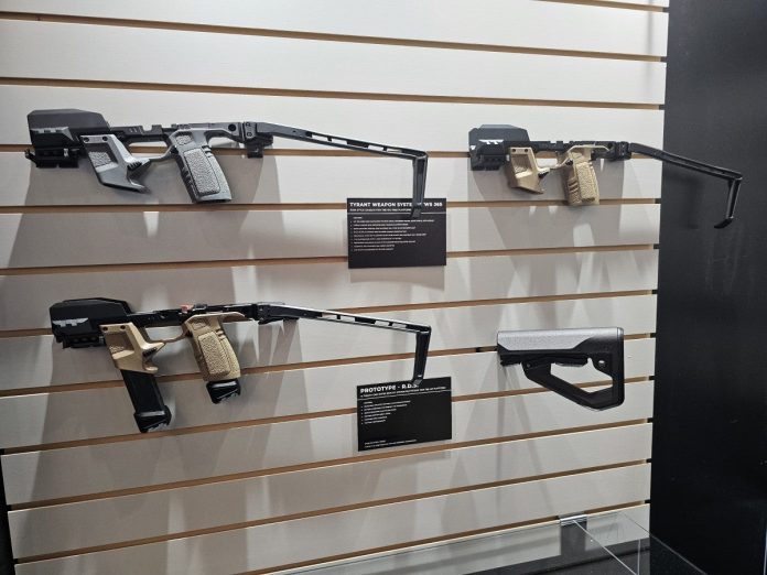 Tyrant CNC is at SHOT Show 2026 and they brought along their TWS365 PDW Chassis for the SIG Sauer P365 series of handguns. This unique chassis system that has Tyrant’s iconic flair can easily convert your P365 pistol into a more capable platform with better ergonomics, more capacity, and still is able to be conceal carried, if you wish.